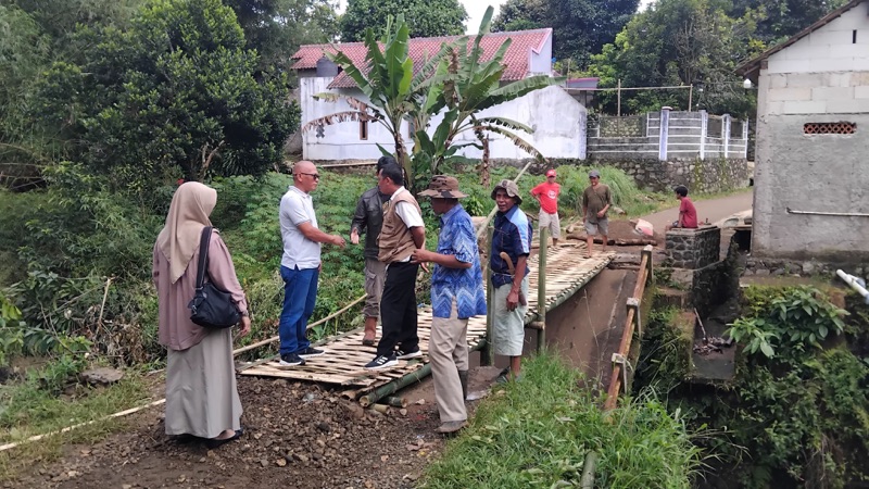 Kerusakan jembatan penghubung antar desa tersebut terjadi setelah hujan deras disertai banjir, hingga menyebabkan pondasi jembatan lama tergerus arus sungai. Akibatnya, akses warga dari kedua desa terputus selama beberapa hari.